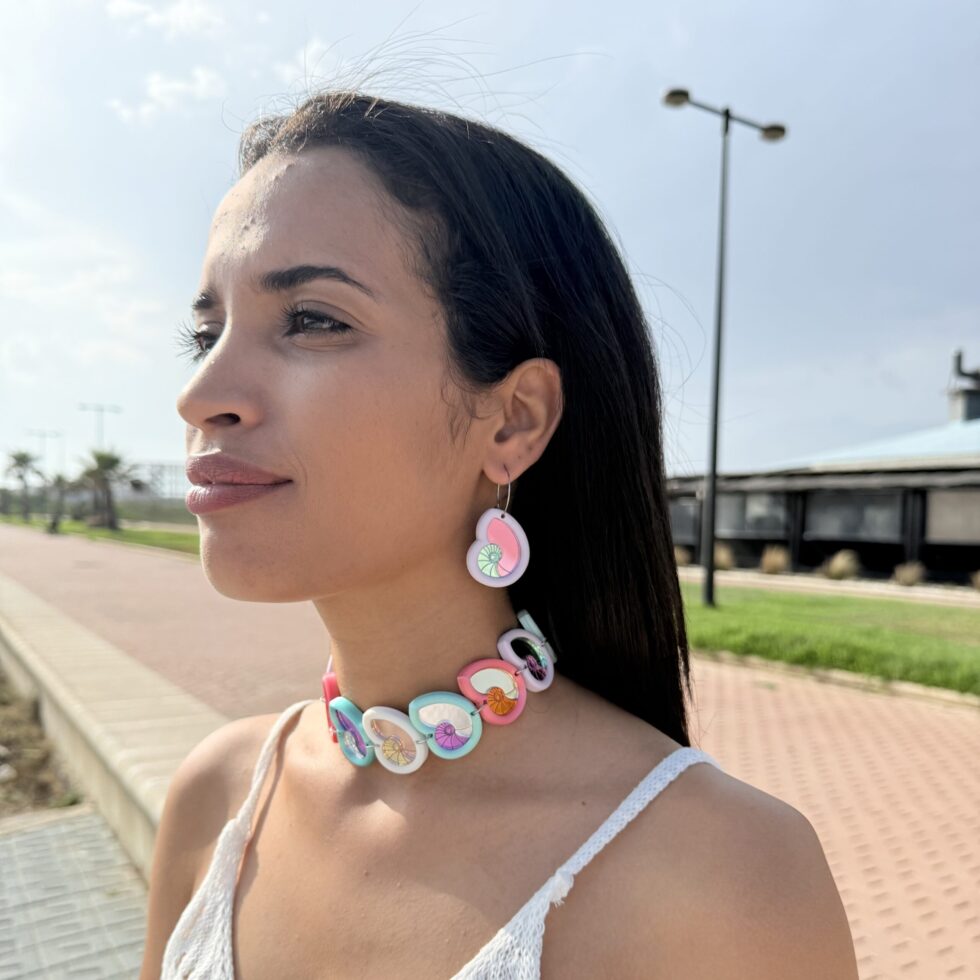 Colores:  Collar caracola de resina con metacrilato de diferentes colores.