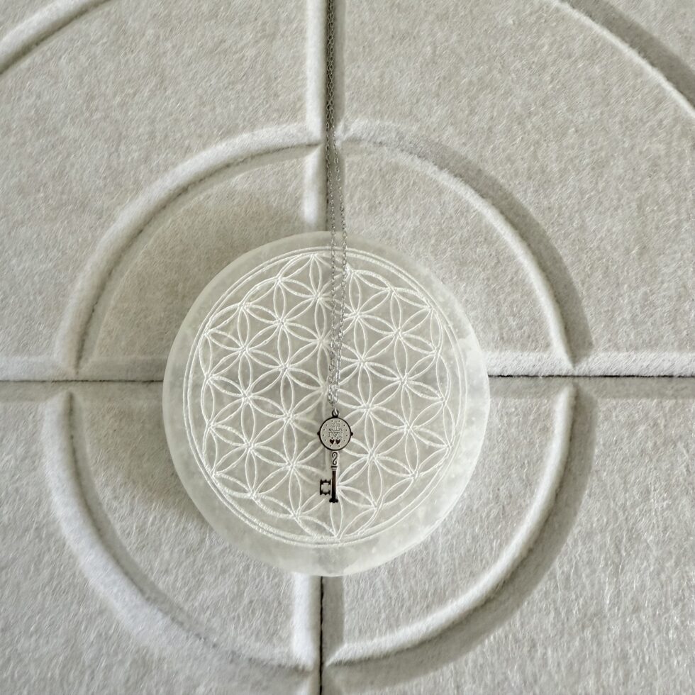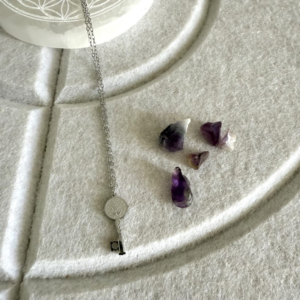 Colgante llave de San Benito. De acero inoxidable disponible en plata.