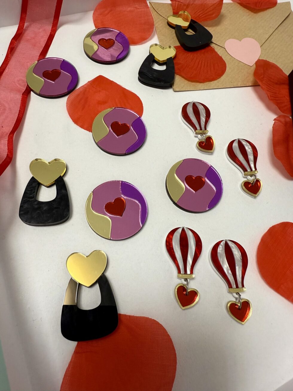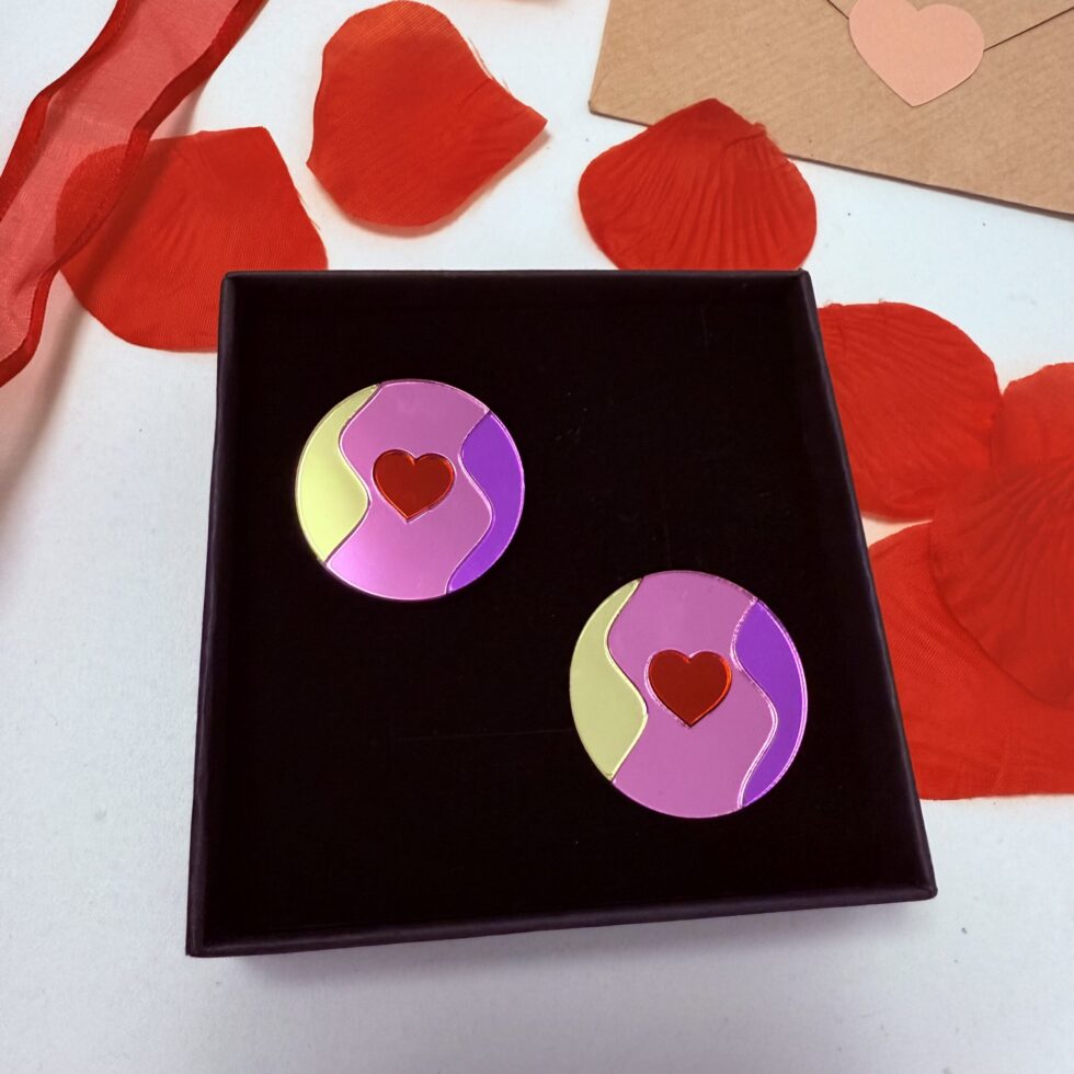 Colores: Dorado, rosa claro y morado, corazón rojo.