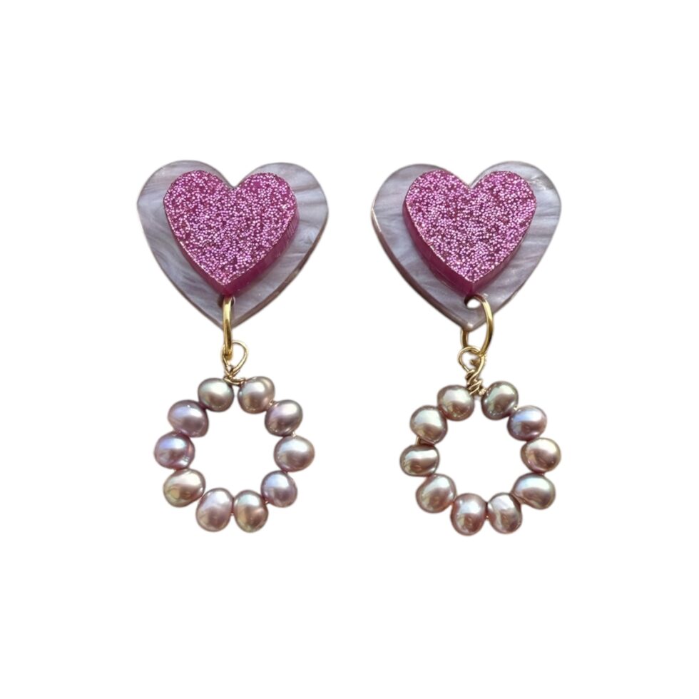 Opción 4 : Corazón rojo nácar y rosa purpura con el detalle de perlas blancas de agua dulce.